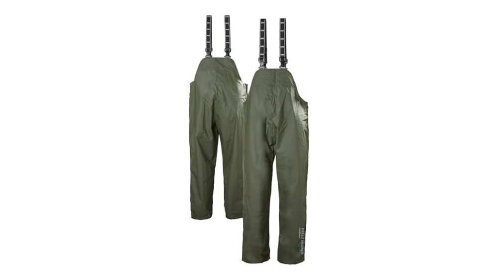 Helly-Hansen Mandal Bibs offer full waterproof protection and durable PVC coating. They keep you dry in rainy conditions and feature a comfortable fit for long fishing trips.