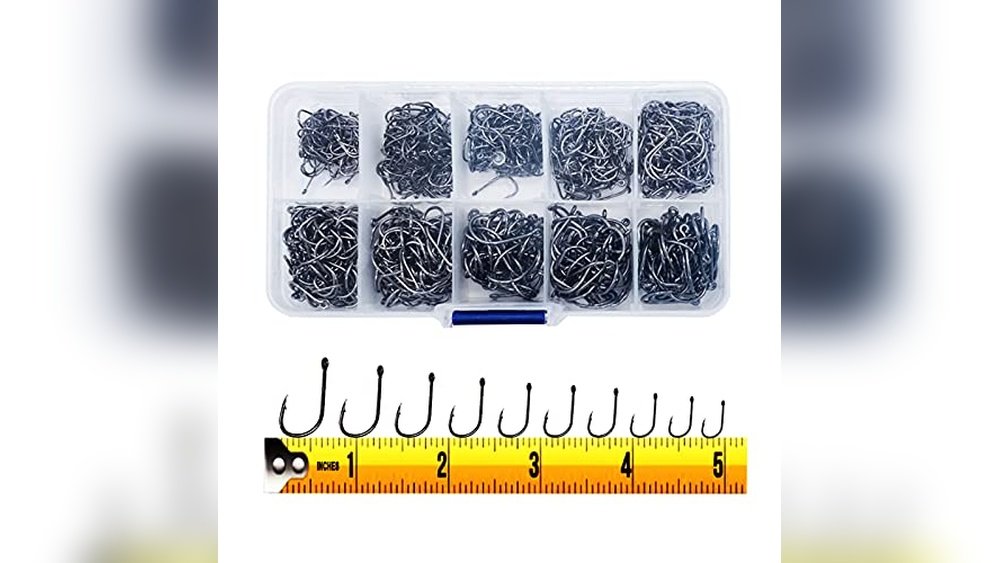 • Includes 500 durable carbon steel hooks in assorted sizes (6 through 24) for various fishing applications.