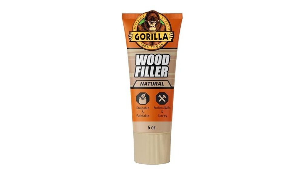Gorilla All Purpose Wood Filler, Natural Color, 6 Ounce Tube (Pack of 1) - Water Resistant for Indoor or Outdoor Projects and Repairs