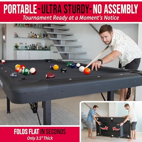 7 FT BILLIARDS TABLE: Heavy-duty, mid-size pool table measures 7 x 4 x 2.5 ft (LxWxH); Large enough for fun competitive games but compact for game rooms and man caves;…