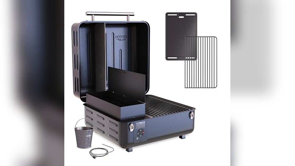 The Traeger TFT18KLD offers electric wood pellet smoking with digital controls. Its compact size and cast iron griddle suit outdoor cooking and tailgating perfectly.