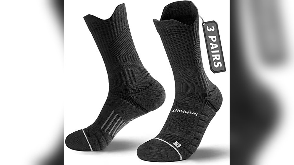 Rahhint Compression Running Socks 3 Pairs, Cushion Crew Socks, Anti-Blister Moisture Wicking Athletic Hiking Basketball Socks