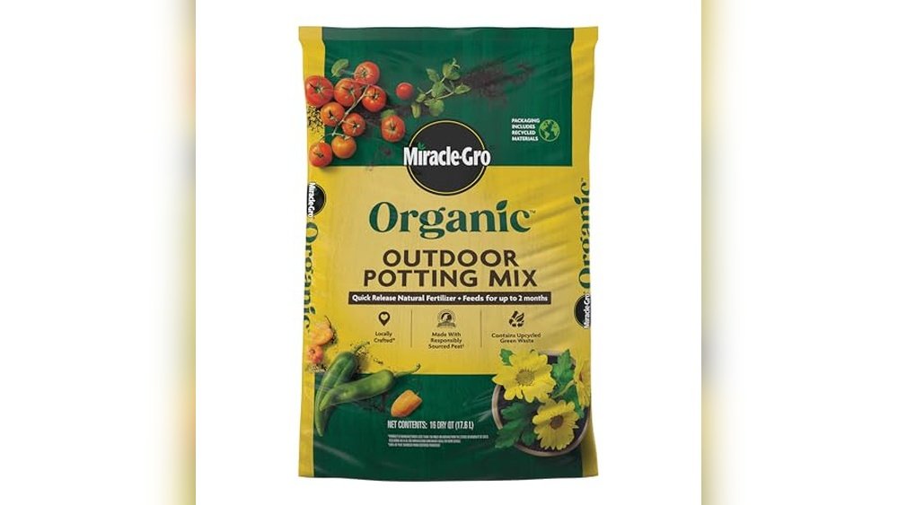 Miracle-GRO Organic Outdoor Potting Mix is ideal for outdoor container plants. It contains natural fertilizer and supports quick growth. It is OMRI listed, ensuring organic standards, and provides essential nutrients for healthy plants in containers.