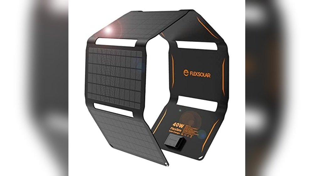 The FlexSolar 40W foldable solar panel is ideal for camping. It offers USB-C and USB-A outputs, is waterproof, and charges phones, tablets, and power banks efficiently.