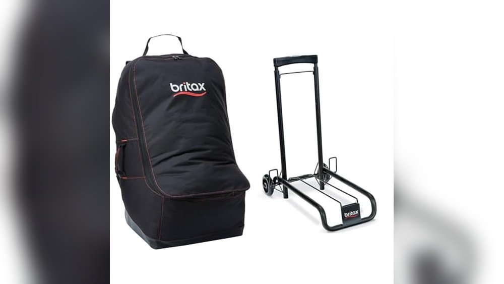 The BRITAX Car Seat Travel Bag has padded backpack straps, built-in wheels, and an adjustable handle. It is water-resistant and compact, fitting in airplane overhead bins. These features make it easy to carry and protect your child’s car seat during travel.