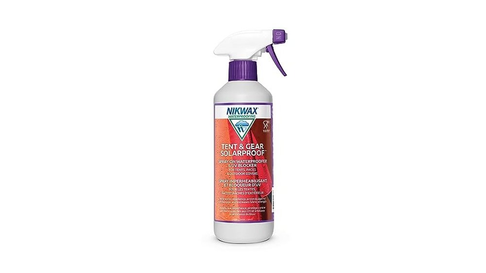 Nikwax Tent & Gear Solarproof is ideal for tents. It restores DWR water repellency and adds UV protection. It works well on rain flies, canvas, and backpacks, ensuring durable waterproofing and fabric care.