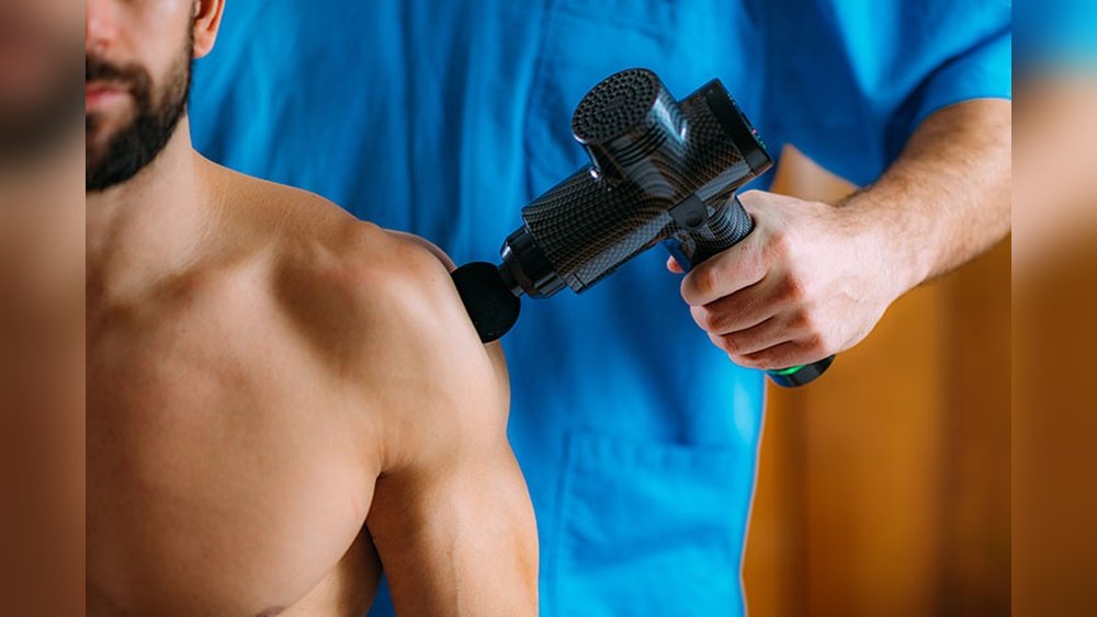 Massage guns use a technique called percussive therapy. These handheld devices rapidly move a small head back and forth, delivering quick pulses to the muscle. This action is meant to mimic the effects of deep-tissue massage, but with faster, repeated movements.
