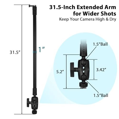 The arm is 31.5 inches. That reach is why my VINmounts 31.5″ Kayak Camera Mount Review highlights its wide framing advantage.