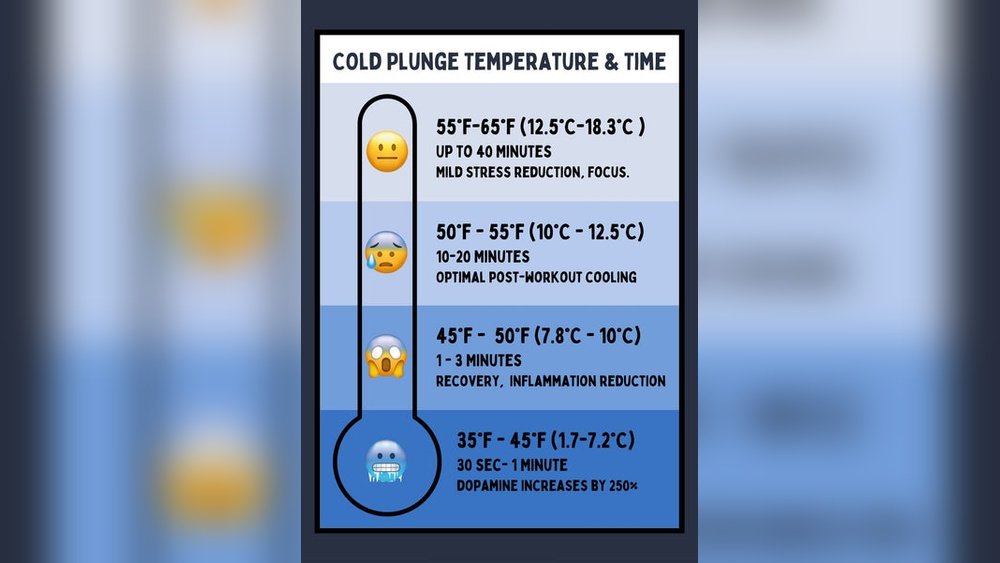 • The duration of your plunge matters as much as the temperature. Colder water means you should stay in for less time.